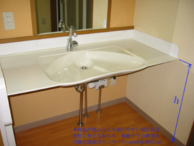 【課題】 車椅子利用者の脚部を洗面カウンタの下側奥まで進入可能とすることと、洗面カウンタにおいて水を溜める凹部と車椅子利用者との距離を近付けることとの両立を図って、洗面カウンタの使い勝手をさらに向上させること。
